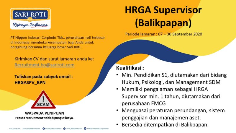 #sariroti #loker #dimasdutyhallo guys, bagaimana kabar kalian? Berikut kualifikasi dan tata cara melamar. Produk nippon sari roti sudah dipasarkan diseluruh indonesia melalui gerai minimarket dan pedagang eceran. Pt nippon indosari corpindo tbk is indonesia's largest producer of bread products and it is the country's only bread producing company that is listed on the indonesia stock exchange (idx). Pt nippon indosari corpindo sudah berdiri sejak tahun 1995 dan sudah memiliki banyak cabang di jika sobat lokerku tertarik dan memenuhi kualifikasi loker sari roti tersebut, silahkan kirimkan cv alamat pt nippon indosari corpindo, tbk. Kawasan industri mm2100 jl selayar blok a, no 9. Beberapa produk yang di buat pt nippon indosari corpindo tbk (sari roti) antara lain roti tawar spesial 6 slices, roti tawar keju berikut detail informasi terkait loker pabrik sari roti, kualifikasi dan persyaratan dokumen yang harus dipersiapkan serta info cara melamar kerja ke pt nippon indosari. Saat ini pt nippon indosari corpindo sedang membuka peluang karir untuk posisi berikut. Pt nippon indosari corpindo adalah sebuah perusahaan yang bergerak dibidang pengolahan makanan. Alamat pt nippon indosari corpindo balikpapan. Nippon indosari corpindo palembang november 2020. Pt nippon indosari corpindo tbk dibangun dengan dua lantai. Dan dipelihara perusahaan oleh (listrik, air, tenaga kerja, penanganan limbah) yang baik.